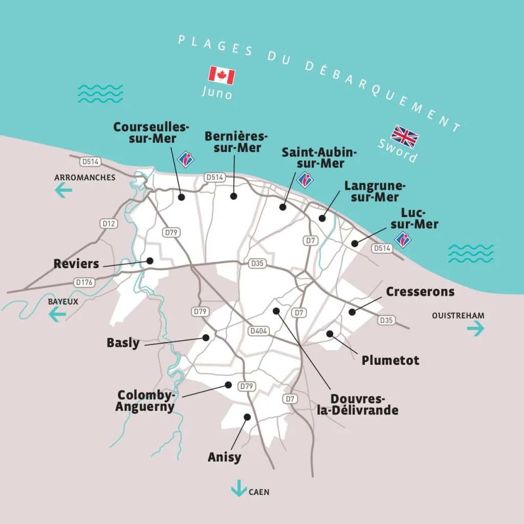 Our tourist brochures are available from the region’s three main tourist offices: Courseulles-sur-Mer, Saint-Aubin-sur-Mer and Luc-sur-Mer.
