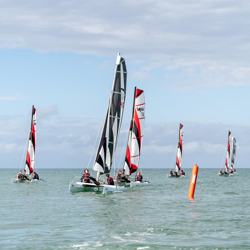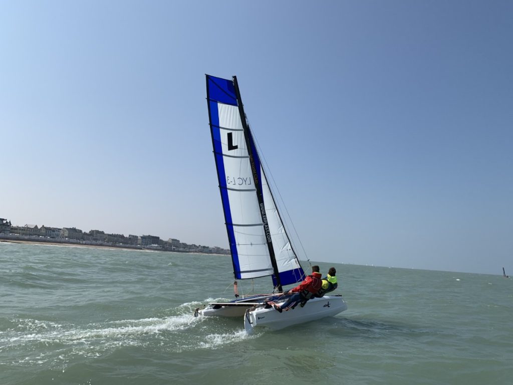 - Catamaran Sportif (S / 12 / 13) : C’est le support roi pour apprendre la coordination à deux. On découvre les sensations de gite et de vitesse sur des bateaux réactifs, disponibles dans les trois clubs (Luc, Langrune et Courseulles).