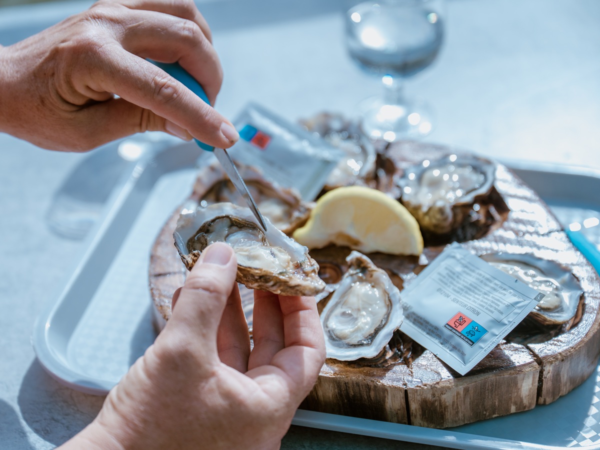 Oyster producer since 1955, retail sales, seafood platters, smoked salmon, stuffed shellfish, tasting on site during opening hours.