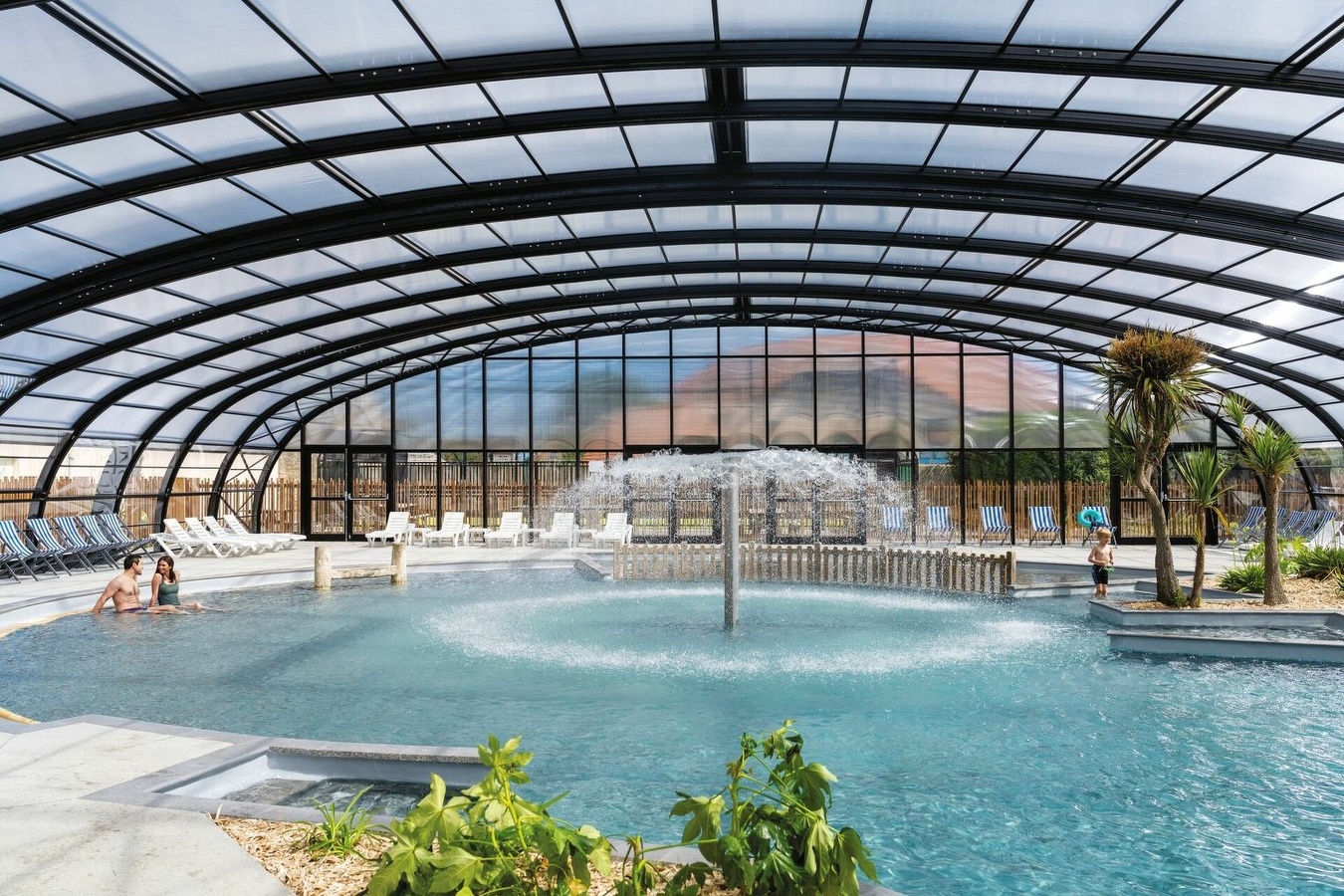 The Camping de la Côte de Nacre, in Saint Aubin sur Mer, welcomes you to a 10-hectare complex with a water park (750 m² with slides, river, swimming pool with modular cover, spa) at your disposal. Benefiting from both a green hinterland and a beautiful beach 600m away through the streets of the village, the Côte de Nacre in Normandy is a place to stay that is both relaxing and invigorating. Modern sanitary facilities, mobile homes for rent and traditional pitches.