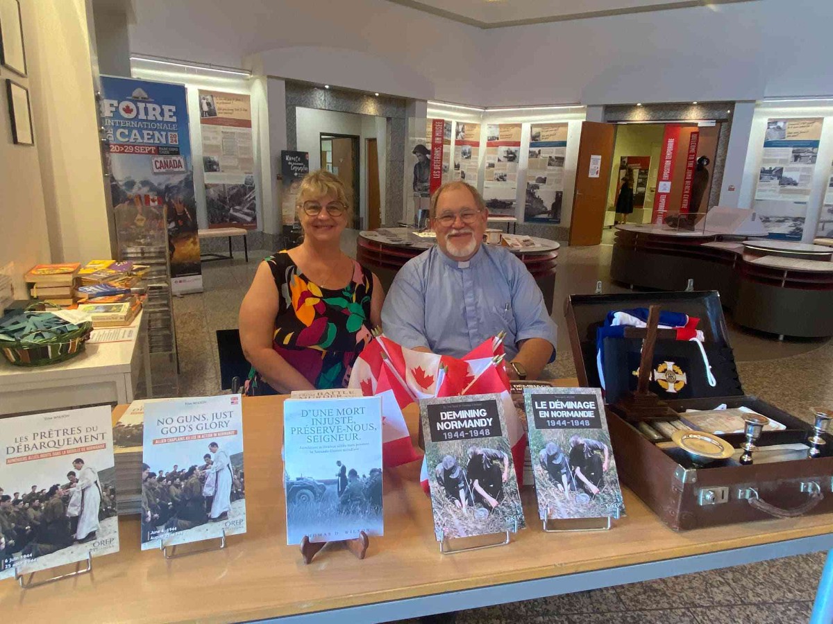 The Reverend Tom Wilson, who has been passionate about the military history of the Second World War since the age of 12, presents this bilingual lecture with his wife Dawn Cornelio. He is the author of Prêtres du Débarquement, published by OREP Éditions, and "D' une mort injuste, préserve-nous, Seigneur", which tells the story of all the Allied chaplains killed between 10 May 1940 and 8 May 1945 in north-west Europe and the Atlantic Ocean.