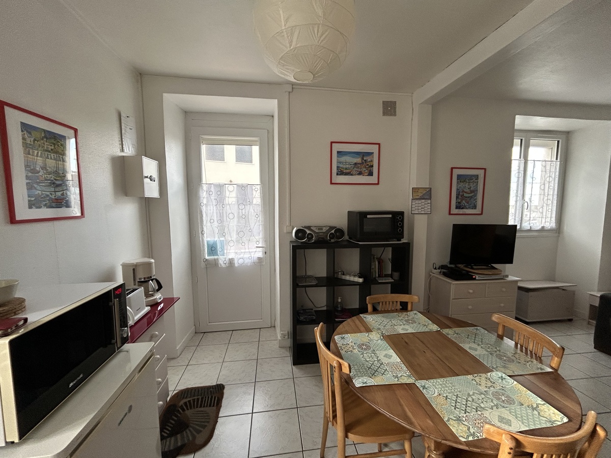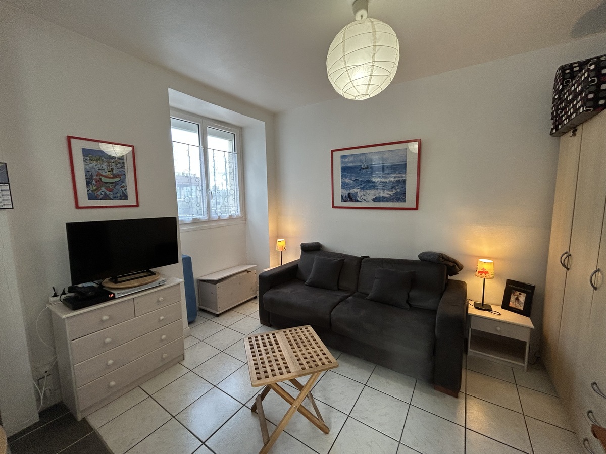 50m from the sea and shops, completely renovated studio on the ground floor of an old building. Kitchenette (MO, combi-freezer), living room with sofa bed (TV, DVD), shower room with WC. Sheets and towels rental. Parking nearby.