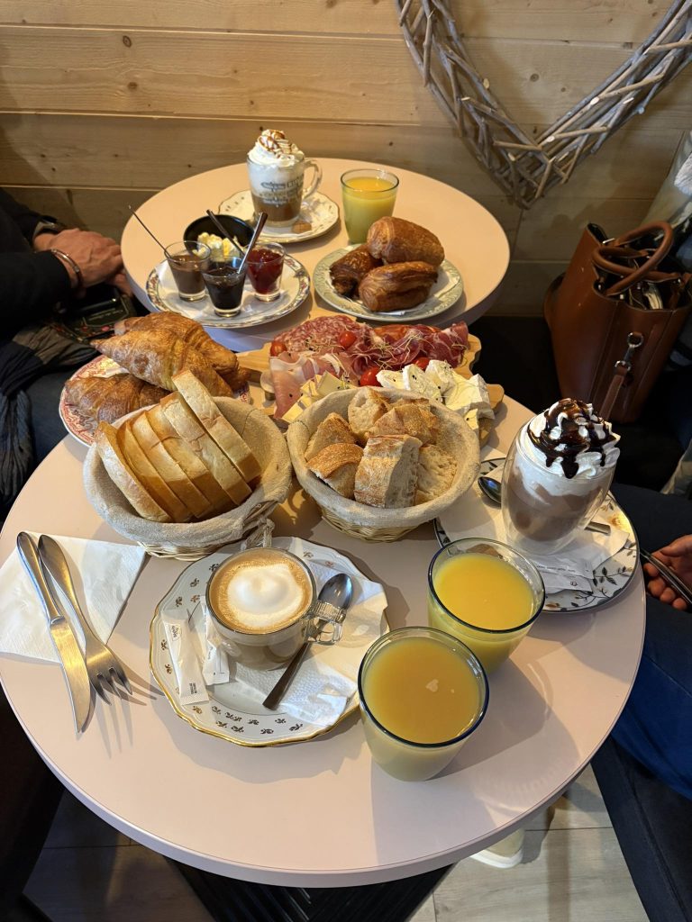 - La tradition boulangère : Des viennoiseries dorées (croissants, pains au chocolat) et des tranches de pain frais à napper de confitures ou de pâtes à tartiner.