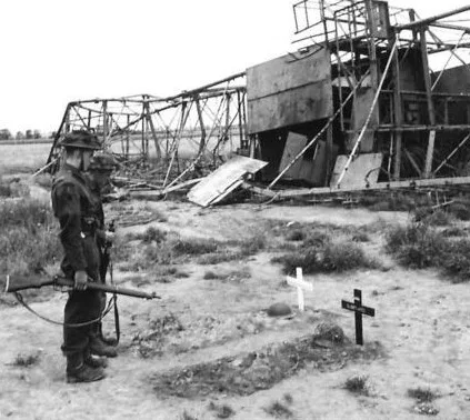 Dans l’après-midi du 6 juin, des soldats Canadiens appartenant au régiment du Royal North Shore, venant de Saint-Aubin-sur-Mer (Juno Beach), se heurtent aux défenses du camp. Ils décident de laisser cet obstacle aux troupes britanniques.
