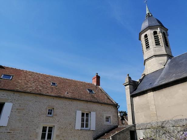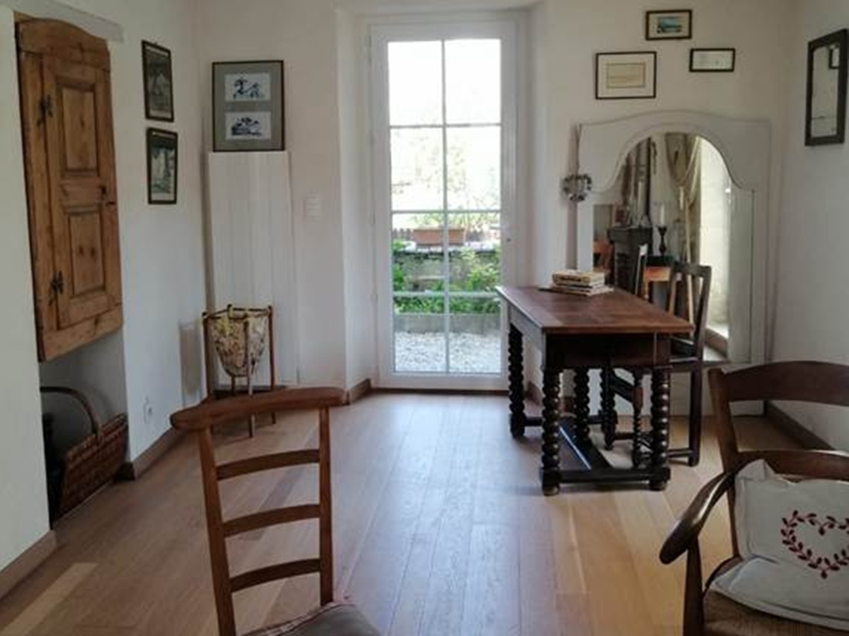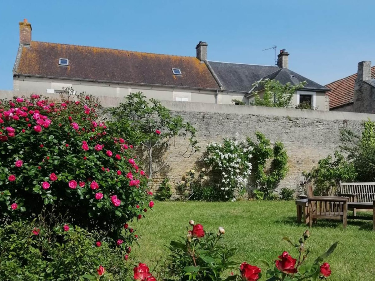 À l'extérieur, le grand jardin est un véritable havre de paix où le clocher de l'église semble veiller sur vos moments de détente.