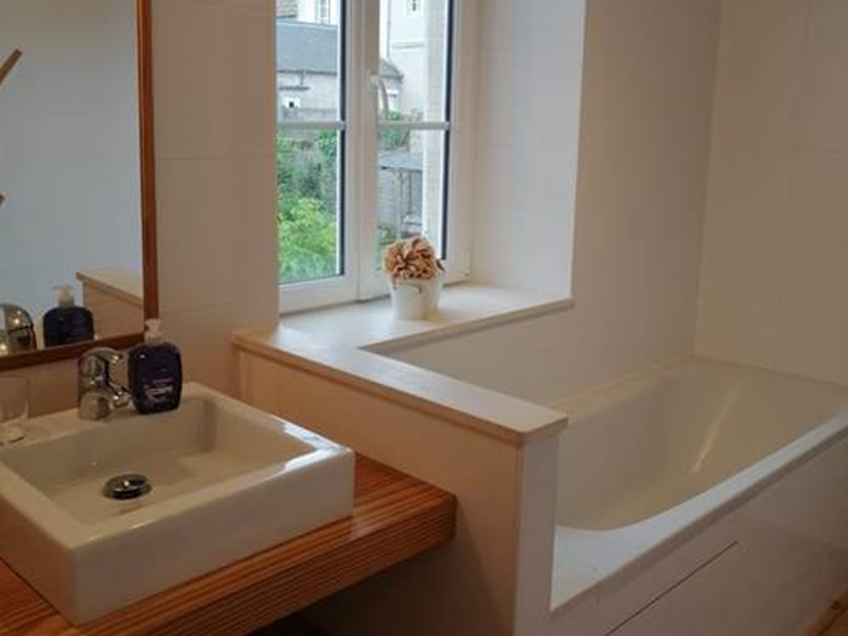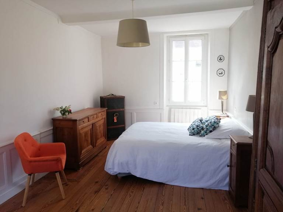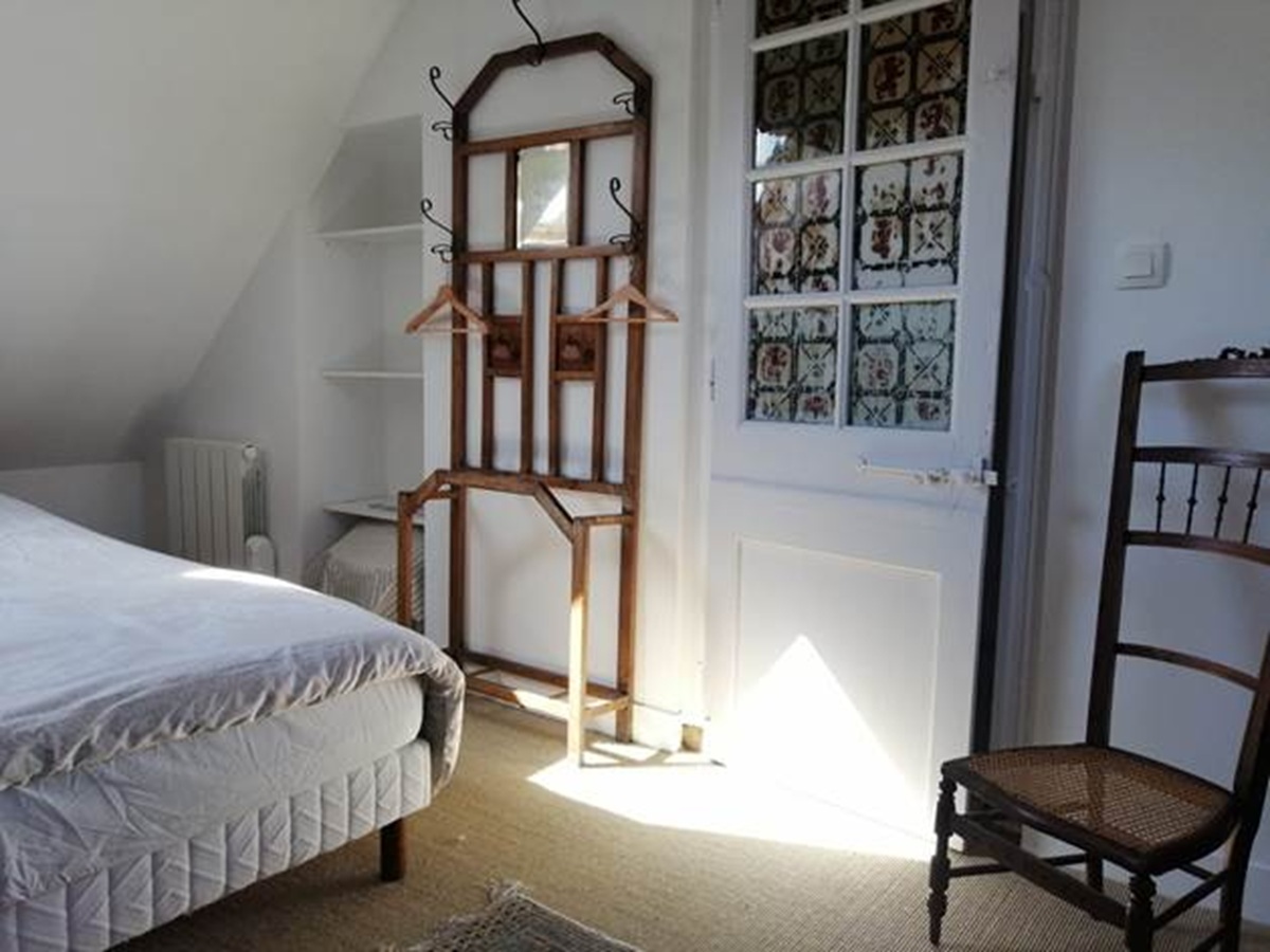 2ème étage : Une suite sous les toits avec un grand lit (160x200) et sa salle d’eau privée. Le palier accueille également un lit d’appoint pour une configuration flexible.