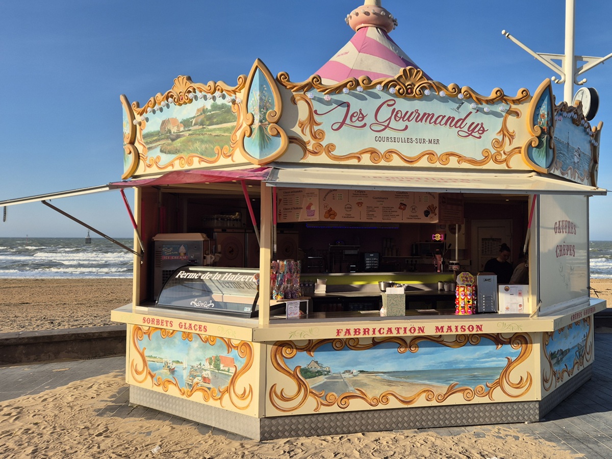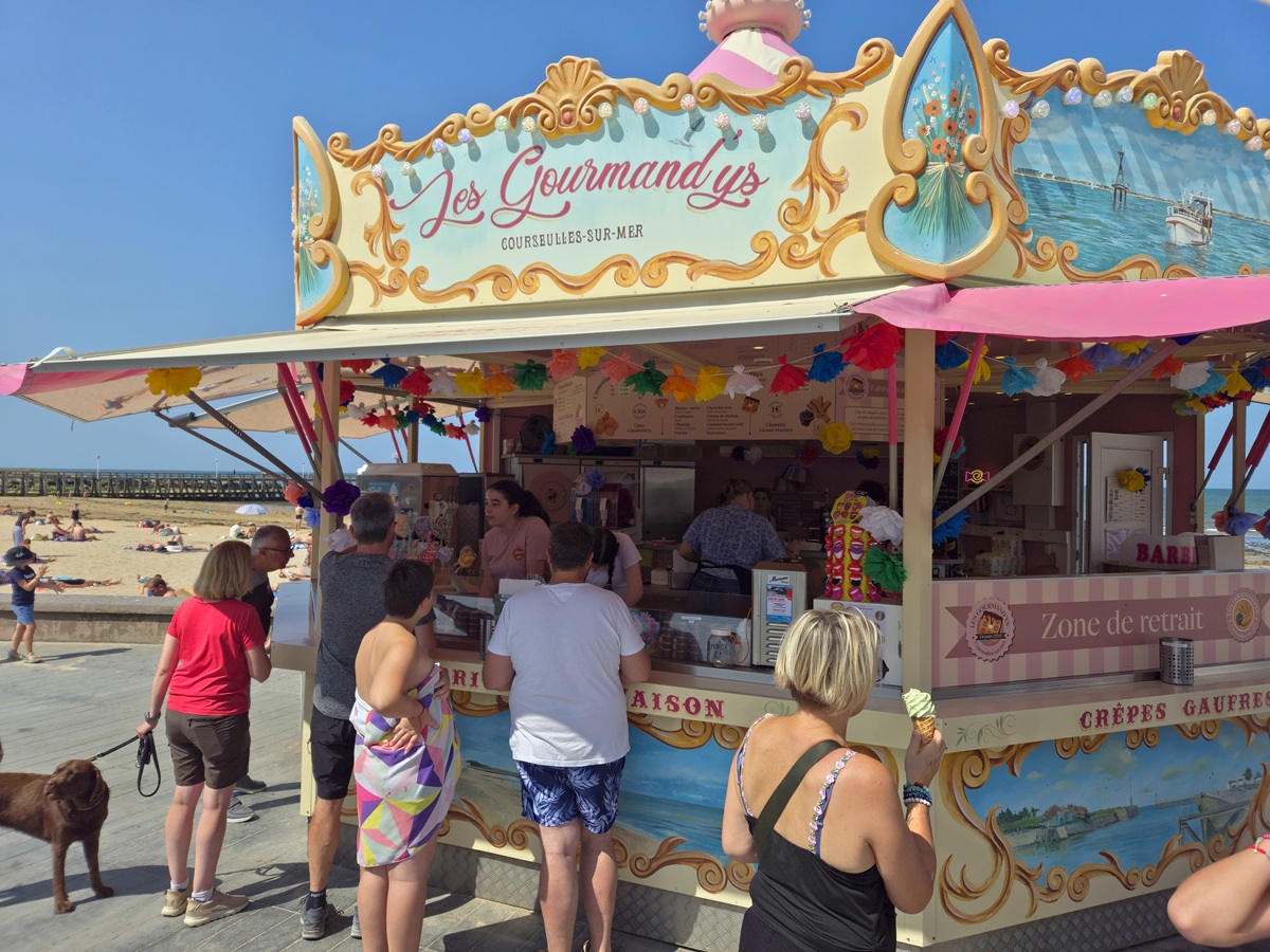 Entre chichis, croustillons et autres pralines, les bacs de glaces et sorbets colorés du kiosque Les Gourmand'ys ne passent pas inaperçus.
