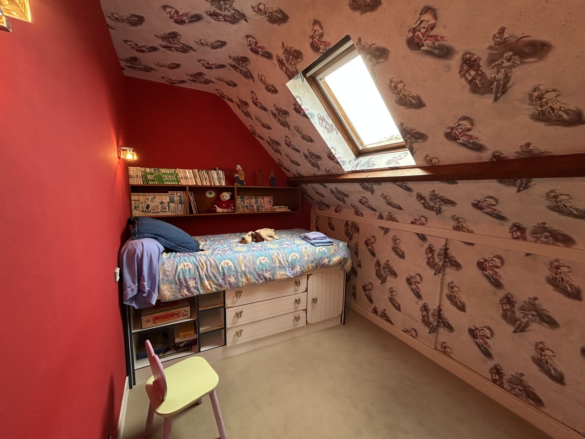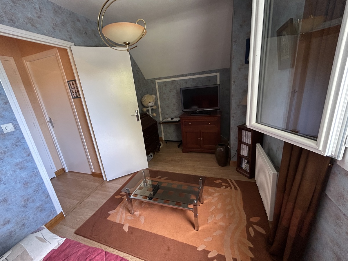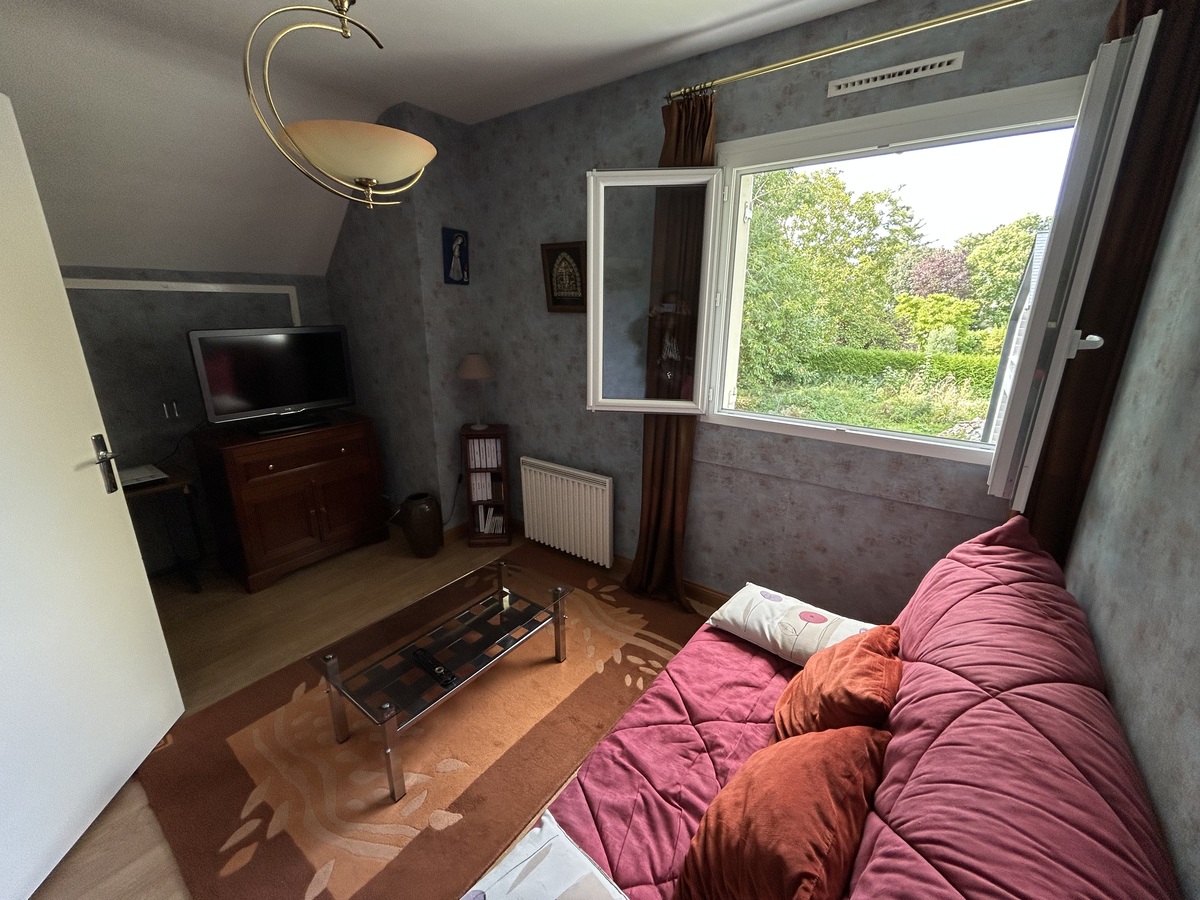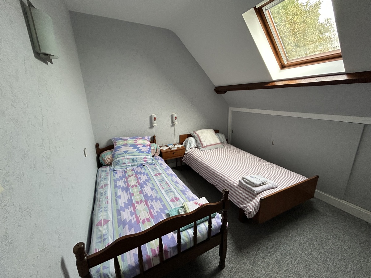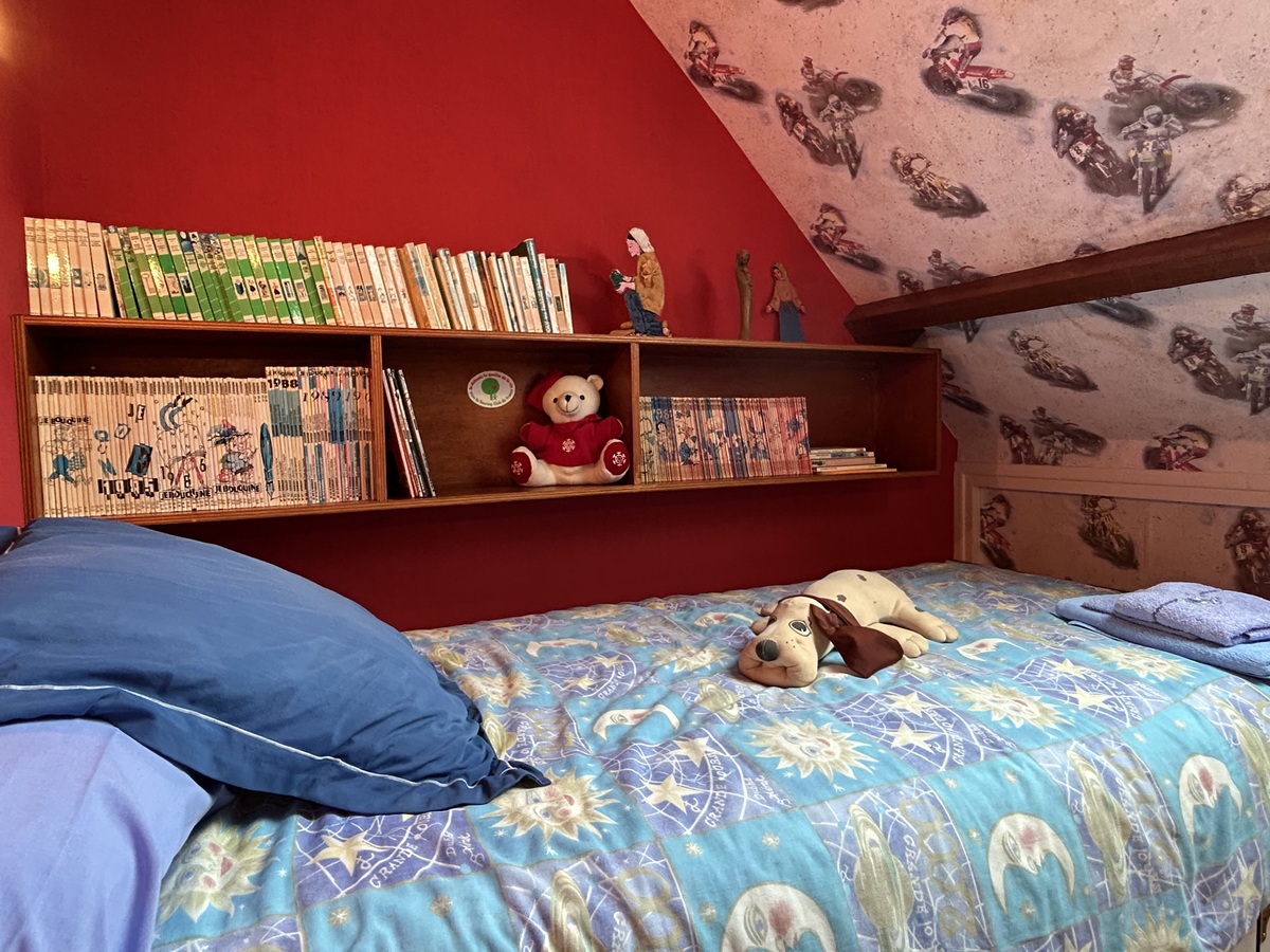 Pensée pour le confort des familles, notre chambre d'hôte est un véritable cocon. À l'étage, vous trouverez des chambres spacieuses et confortables partageant une salle de bain commune, ce qui facilite l'organisation des séjours avec des enfants. Après une journée d'aventures, détendez-vous dans notre petit salon dédié, équipé d'une télévision, l'espace idéal pour lire un livre, regarder un film ou simplement passer du temps ensemble.